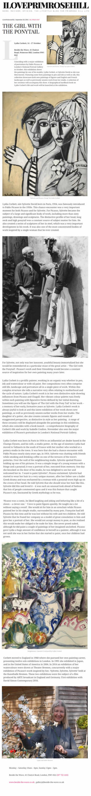My inspiration comes from everywhere. Certain animals like the horse, the dove, the robin make me draw as does the sea, fish, the moorlands of my home in Devon and my home of Provence. I paint forever and like the Japanese artist Hokusai: ‘Nothing I did before was worth looking at. When I reach 80 I’ll be making progress so that in my 90’s I’ll have penetrated even further the hidden meaning of things; by the age of 100, even dots and lines will surely possess a life of their own’.
